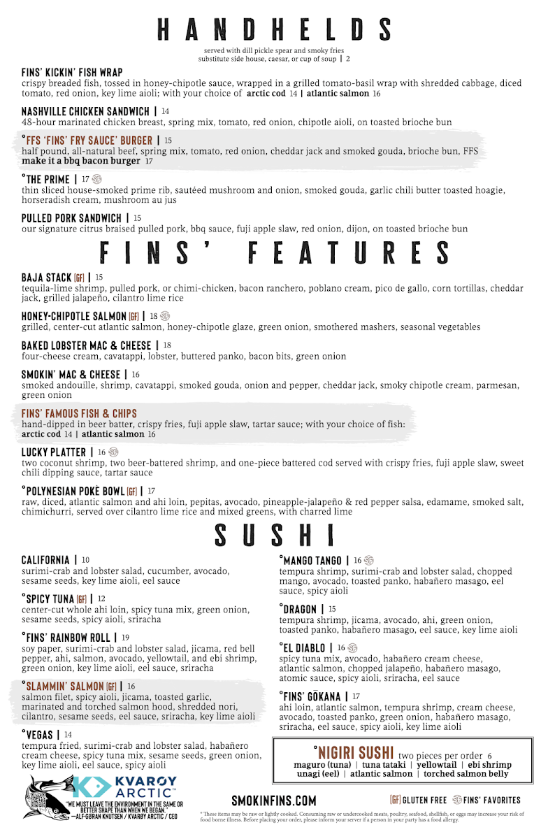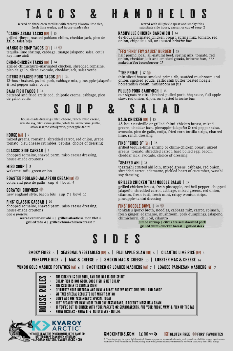 Smokin Fins - Littleton Menu